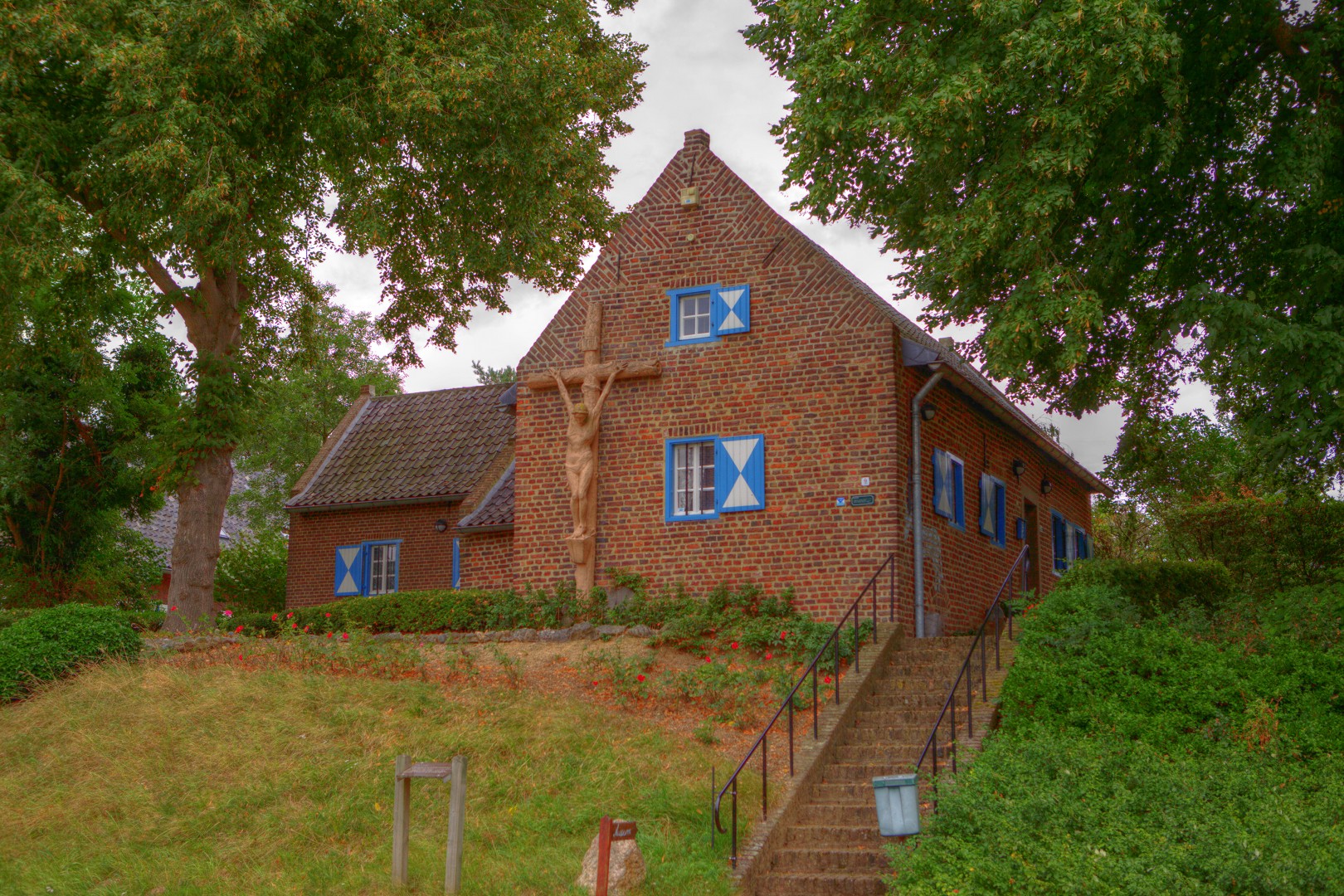 Verder is aan de kopgevel aan de straatkant het bekende kruisbeeld van de echtgenote van Joep Nicolas, Susanne, te bewonderen.